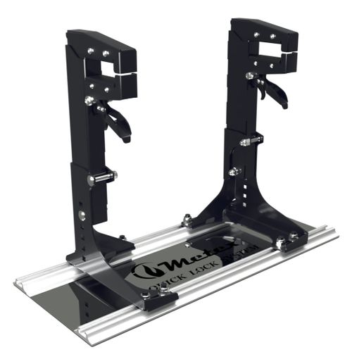 Крепление мотоцикла без стяжек и ремней Quick Lock V2. Просто закати свой мотоцикл в крепление, нажми на верхний зажим до фиксации, теперь мотоцикл крепко зафиксирован за подножки.